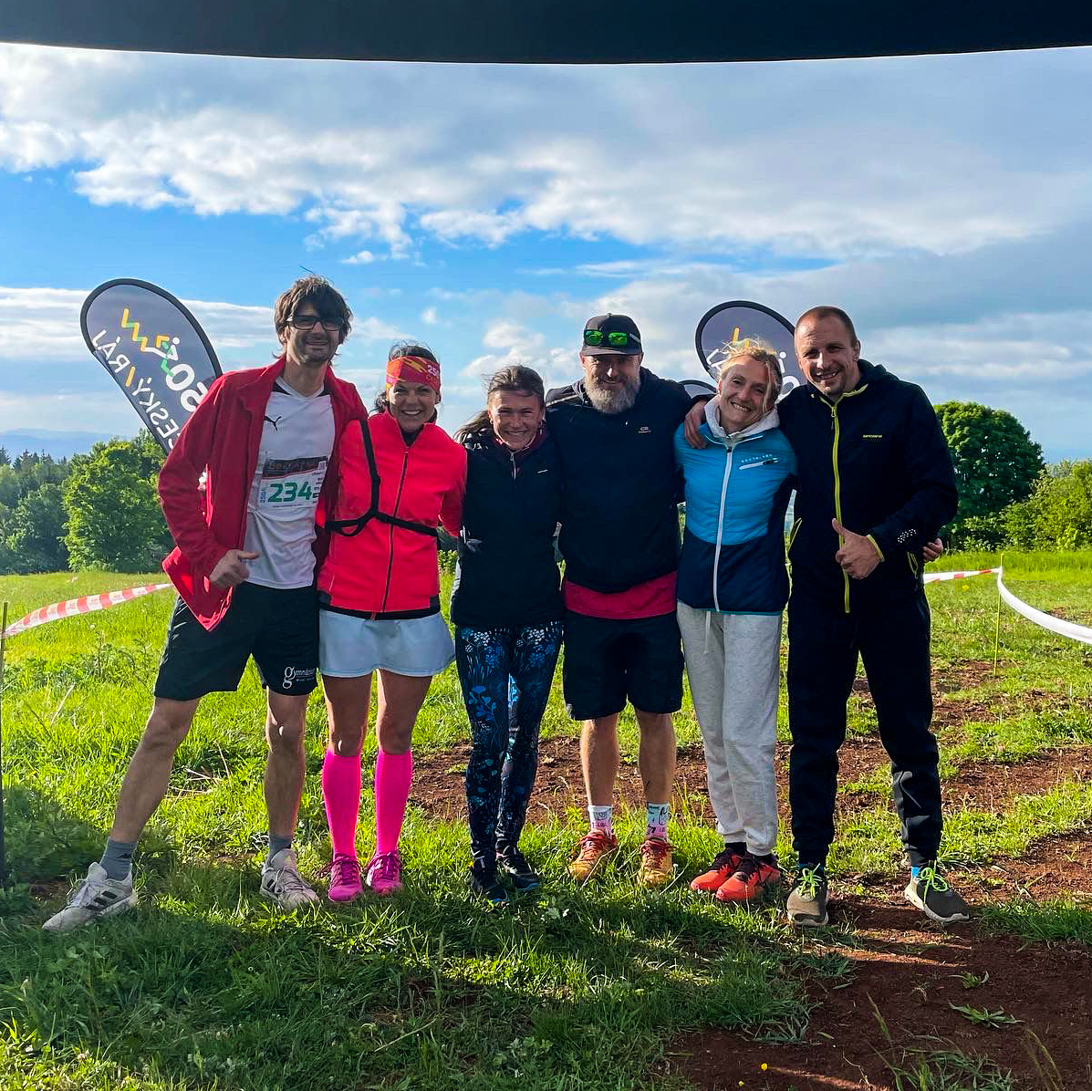 Na první úsek vyráží Radek, celá mašinérie závodu se rozjíždí. Zatímco běžci z prvního auta se již úspěšně perou s tratí, naše druhé auto se postupně dává do kupy a vyrážíme na první předávku na Vyskeř, kde se také dostáváme do koloběhu jeden běží, ostatní rychle jedou na cíl úseku, respektive start dalšího úseku. A tak stále dokola někdy s větší či menší pauzou na odpočinek.