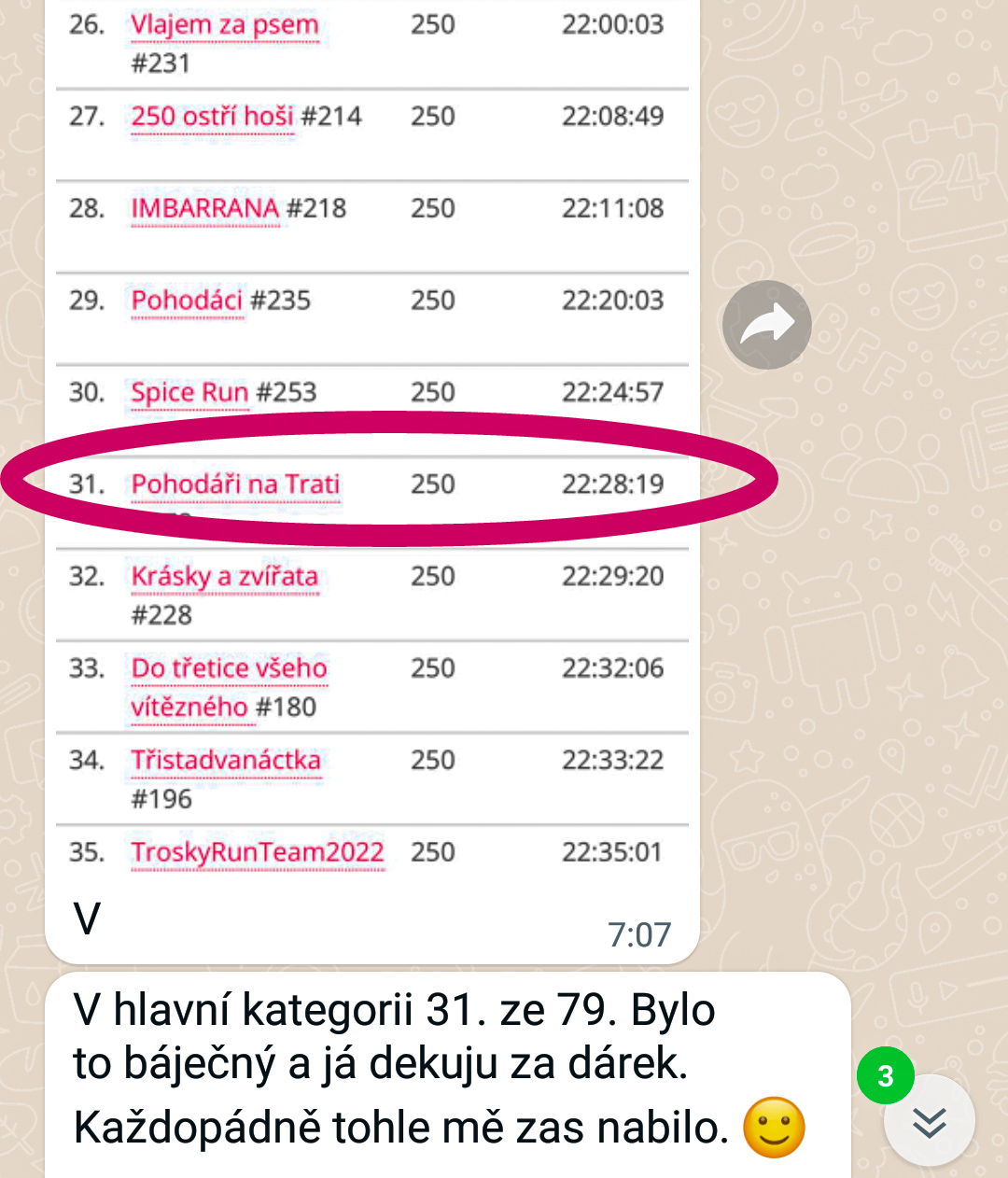 Bylo to boží, to potkávání a navíc jsem si perfektě zaběhal, už dlouho mi to tak po stezkách nelítalo, jako v pátek a v sobotu.
