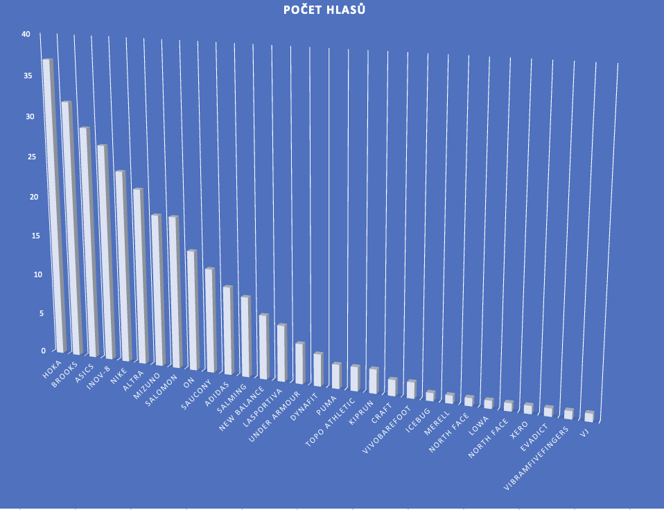 Zajímá mě, co nového je na trhu ( ), zajímá mne co ostatní chválí a naopak. Sleduji trendy a vývoj v botách. Jaká značka běžeckých bot je ale ta nejoblíbenější? Zeptal jsem, udělal průzkum.