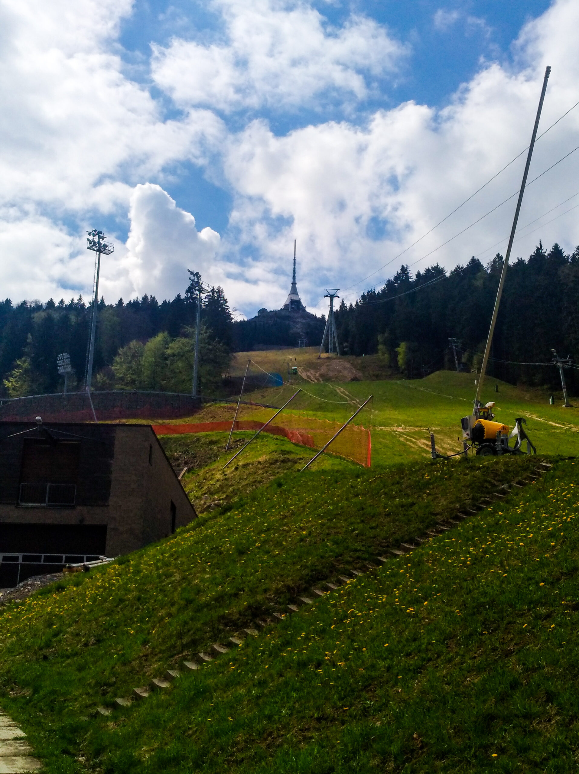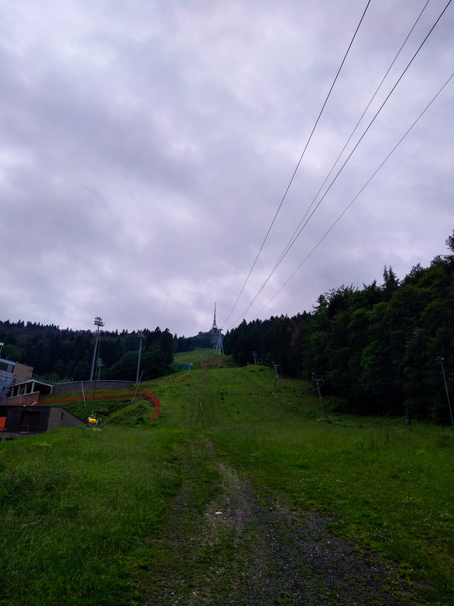 Cestu nahoru pod lany můžeme rozdělit na tři části. První je od startu k můstkům. Druhá od můstků k silnici a třetí od silnice po kamnech k Ještědu. První dvě jsou po louce, v zimě je zde sjezdovka, třetí část po kamenitém úseku, který je často využívám při závodech Sky race.