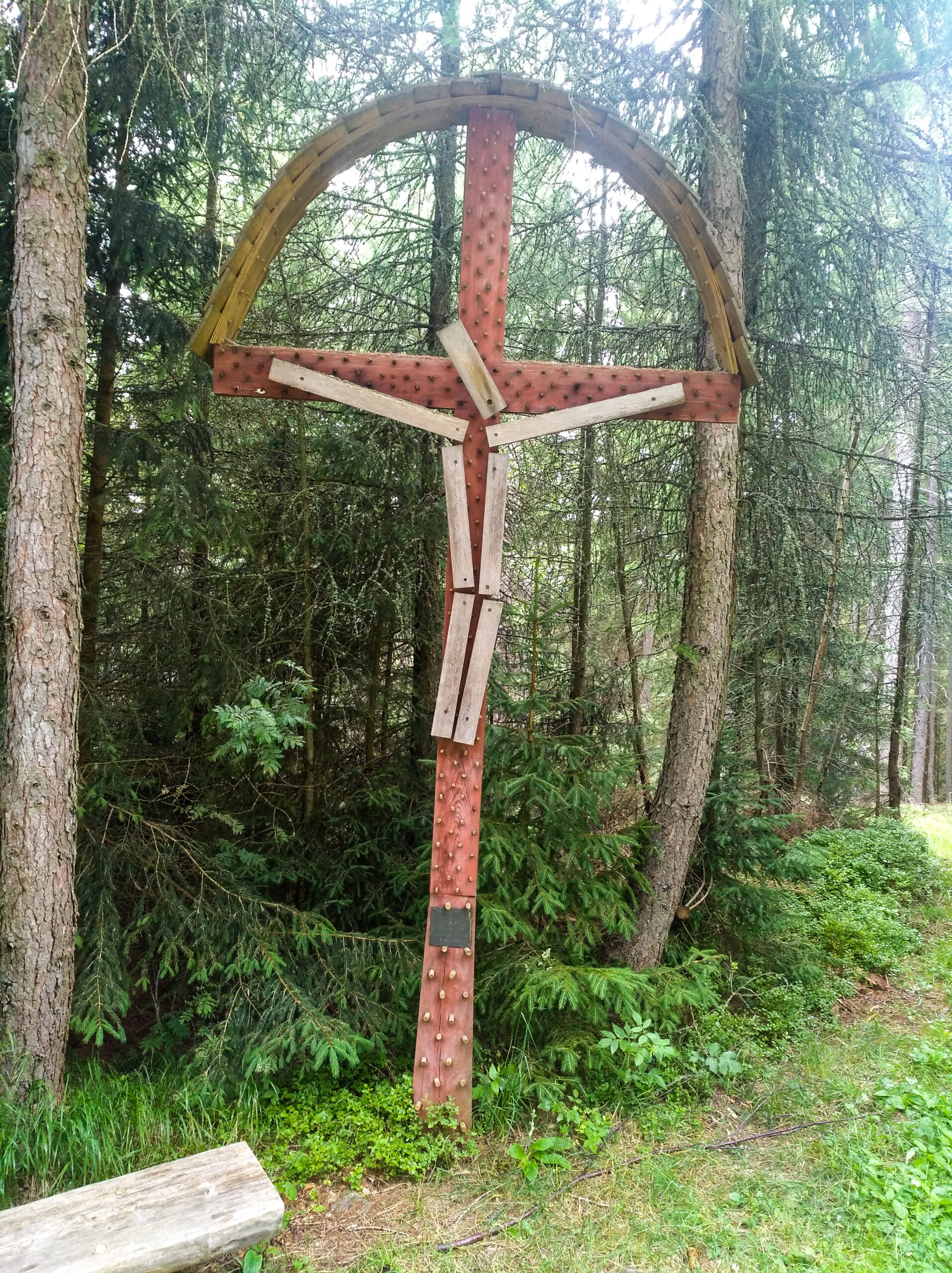 Na seběhu do Temného Dolu je v trase překážka, přes cestu po modré značce, která vede serpentinami dolu okolo Křížové cesty, je páska, zákaz vstupu. Pokládám ruku na pásku ….  psst, ticho nebudeme o tom mluvit, a najednou jsem dole na silnici. Ale malůvky na jednotlivých zastaveních křížové cesty jsou dost spektakulární.