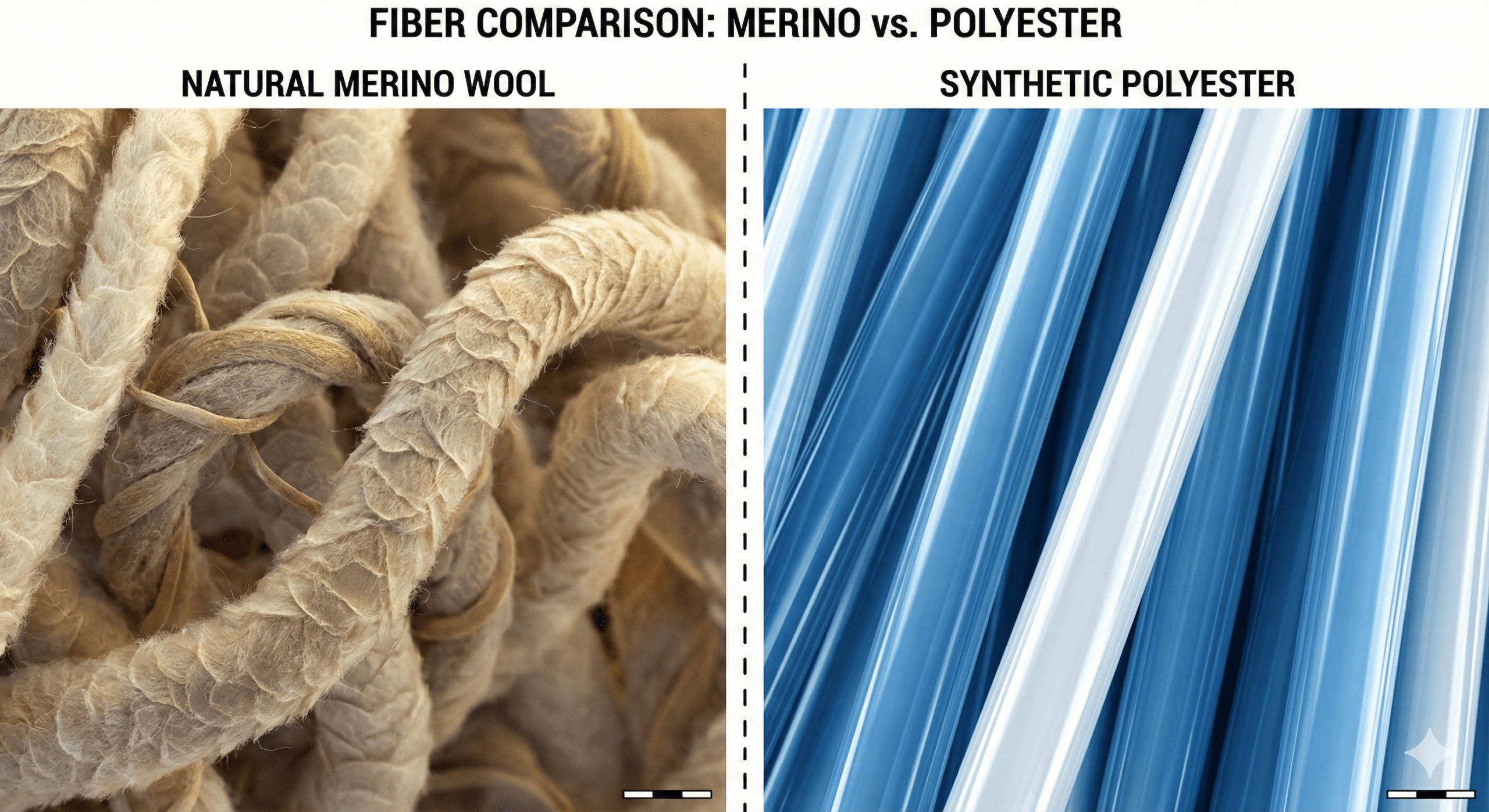 Syntetika (Polyester, Polypropylen): Vlákno je hladké, nenasákavé. Pot po něm „sklouzne“ do další vrstvy.